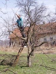 De eerste winter hebben we nu achter de rug, we hebben veel genoten van de sneeuw, maar nu de eerst lente zonnestralen doorkomen is dat ook wel een lekker gevoel en dat betekent dat het tijd is om de fruitbomen te snoeien maar ik had vorig jaar een boom zo verknipt dat het ons beter leek om het dit jaar door een kenner te laten doen, dus hebben we een man uit het dorp gevraagd die hier elders in de fruitboomgaard werkt en hij had dit klusje dus snel geflikt.