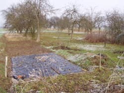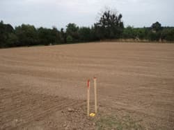 In een leuke enthousiaste bui hadden we een pony gekocht met het idee dat hij dan leuk een beetje kon grazen, maar deze mega grazer kan er geen genoeg van krijgen en had dus zo zijn landje kaal en staat hij nu af en toe aan een paal. Susanne kwam toen met het idee om het stukje land naast de camping erbij kopen,te kopen, dus ik ben maar eens gaan kijken wat de mogelijkheden waren, na een pittige onderhandeling met de eigenaresse van 86 jaar konden we dit gedeelte kopen en zijn de landmeters geweest om het uit te zetten, en ik dacht het even met een hark glad te maken maar naar een meter dacht ik al dit wordt niets en ben bij de landbouw coöperatie geweest of zei het konden ploegen en inzaaien en dat hebben ze nu gedaan en kunnen we er een omheining om gaan zetten. We hebben het idee om er een wei voor de pony te maken maar we willen ook kijken of we er een kleine kinderboerderij in kunnen maken, dus wie weet toch weer dwerggeiten???