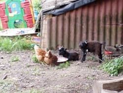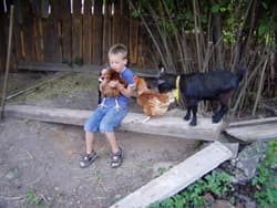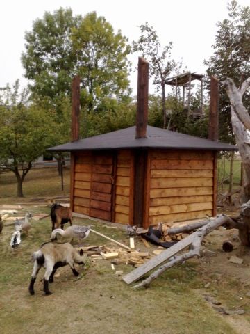 Met de kinderen heb ik een geitenhok gemaakt, maar de dwerggeit is hier niet populair (het levert geen melk op), dus na veel zoeken hebben we vandaag dan eindelijk twee dwerggeiten gereserveerd, ze zijn nog erg klein dus over een maand kunnen we ze ophalen (We hadden een afspraak bij een burgemeester hier 70 km vandaan, die man nam ons mee in een Tsjechische terreinwagen de berg op hier was een oude ru?ne en daar liepen de geitjes rond), maar Susan zag het ook wel zitten om een paar kippen te kopen dus zijn we deze week naar een dieren markt geweest en hebben twee Barneveldse kippen gekocht. verder heeft deze boerin ook een klein groente tuintje aangelegd.