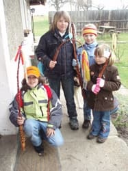 Er is hier een traditie dat een week voor de Pasen de meisjes uit het dorp langs de deuren gaan met een zweepje, ze zingen dan een liedje en tikken dan met het zweepje op de mannen hun achterwerk en krijgen dan als dank een lekker snoepje, dus Larissa kwam met een hele zak vol snoep thuis, deze traditie wordt over een week door de mannen herhaald en gaan dan ook langs de deuren, dit is voor de ouderen ook een mooie aanleiding om hier aan mee te doen want ze krijgen bij iedere deur een lekkere borrel, dus is de kans groot dat er dan iemand op zijn knieën naar huis gaat.