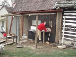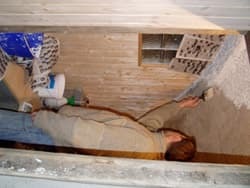 De laatste hand word gelegd aan de hout gestookte sauna die we in ons huis hebben gemaakt.