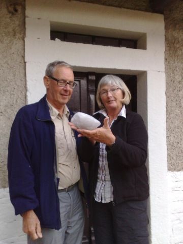 Opa en Oma Versteeg zijn gezellig bij ons op bezoek en deze sportieve mensen houden ervan om de natuur in te trekken en de mooie plekjes op te zoeken, zo gingen ze ook op pad naar het Adelaarsgebergte voor een wandeling, in de mooie natuur lag een bijzondere witte steen op een paaltje wat hun aandacht trok, en hadden een mooie vondst gedaan en dachten hoe komen we hiermee ongezien het bos uit, maar Oma had een rugtas waar hij in paste en zo zijn ze weer verder gegaan met de wandeling. Bij aankomst thuis was het enthousiasme nog groot en Susanne kreeg deze bijzondere steen als aandenken en zetten dit pronkstuk op de kast naast de tv. S'avonds toen Ton thuis kwam moest hij ook komen kijken naar de steen, maar zijn reactie was toen, Sus lik er eens aan, ...wat haar gezicht deed vertrekken en barste in lachen uit, en zij dit is een zout likblok voor de koeien!!!