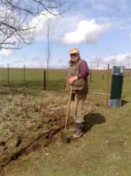 Mijn vader had vorig jaar al 70 palen in de grond gegraven voor de paarden wei wat een hele klus was in de harde klei, maar hij had toen gezegt dat hij wel terug kwam om het af te maken, hij heeft zijn woord gehouden en is nu voor bijna twee weken bij ons en dat voor iemand van 75 jaar die nog nooit zo lang van huis is geweest.Maar deze harde werker heeft gelijk maar alle palen voor de geplande kinderboerderij uitgegraven en in de beton gezet.
