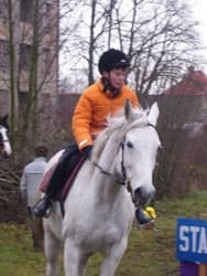 Bij mijn zoektocht om van het grote paard af te komen kwam ik bij een manage deze heeft Blesk toen getraind en Patrick is toen ook begonnen met paardrijles, hij heeft hier heel veel plezier in en heeft zijn eerste club wedstrijd gereden.