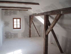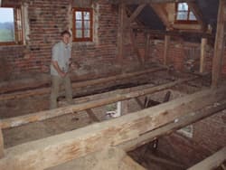 In de winter maanden hebben ze in ons naast gelegen huis waar we in de toekomst willen gaan wonen een nieuwe boven verdiepingsvloer gelegd, en daarna hebben ze alles goed ge?soleerd en zijn de slaapkamers gemaakt dit wilde we zo creëren dat de oude houtconstructie in het zicht zou blijven, in de badkamer boven worden nu de tegels geplakt.