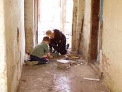 De jongens wilden toen ze uit school kwamen ook wel mee om te slopen, en hebben de oude tegels uit de gang gehaald. De oude bakstenen bikken we schoon wat een hele klus is, en de klusjesman wil ze van me kopen.