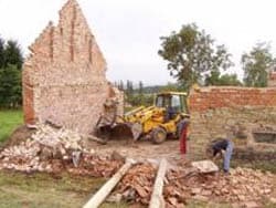We hebben een paar km van onze woonplaats een huis gekocht, het staat aan de rand van een klein dorpje vlakbij het groene dal.. Het was erg verwaarloost en de beste optie was om het te slopen, op het moment dat we de sloopvergunning binnen hadden is de sloop gelijk begonnen, een aannemersbedrijf zou het slopen, maar ikzelf de fanatiekeling had al het houtwerk al gesloopt, dus toen de professionals kwamen konden ze gelijk met het grote werk beginnen. De eerste dag waren we om 7.00 uur begonnen, ik had mijn thermoskan koffie bij me, voor de schaft van half 9, maar bij de pauze van 10.00 uur ging een van de mannen een klein vuurtje maken en de ander even naar de winkel, tot mijn grote verbazing had hij brood en worstjes gekocht, dus die werden aan een tak gestoken en zo zaten we met ze drieën een worstje te braden ( dus van stress is hier nog weinig te bekennen).