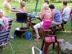 De kinderen hebben hun rapporten gehad en zijn allemaal over naar de volgende klas we zijn trots dat ze na een jaar zo goed Tsjechisch kunnen spreken en verstaan. We hadden al heel wat reserveringen voor de mini camping en toen het seizoen op zijn hoogte punt was hebben we zelfs moeten zeggen dat we vol zaten. In de week dat het druk was op de camping hebben we het muziekbandje uit het dorp gevraagd om gezellig wat Tsjechische muziek te komen spelen en konden er boven het kampvuur worstjes worden gebakken.