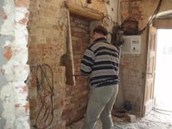 Er zijn sinds een paar weken weer vakmensen bezig in ons naast gelegen toekomstige huis, maar om hier een beetje vaart in te houden ben ik in de avonden en de zaterdag druk bezig om voor hun al vast het rot werk op te knappen en heb hier weer lekkere hulp aan mijn jongens die ook af en toe hun steentje bij dragen, wij willen dit huis zoveel mogelijk in zijn oude staat terug brengen, wat met zich meebrengt dat we de gewelven plafonds moeten afbikken zodat ze weer mooi gestuukt kunnen worden, en als je dan het eind resultaat begint te zien dan zijn we toch blij dat we er geen gipsplaatje tegen aan getimmerd hebben.